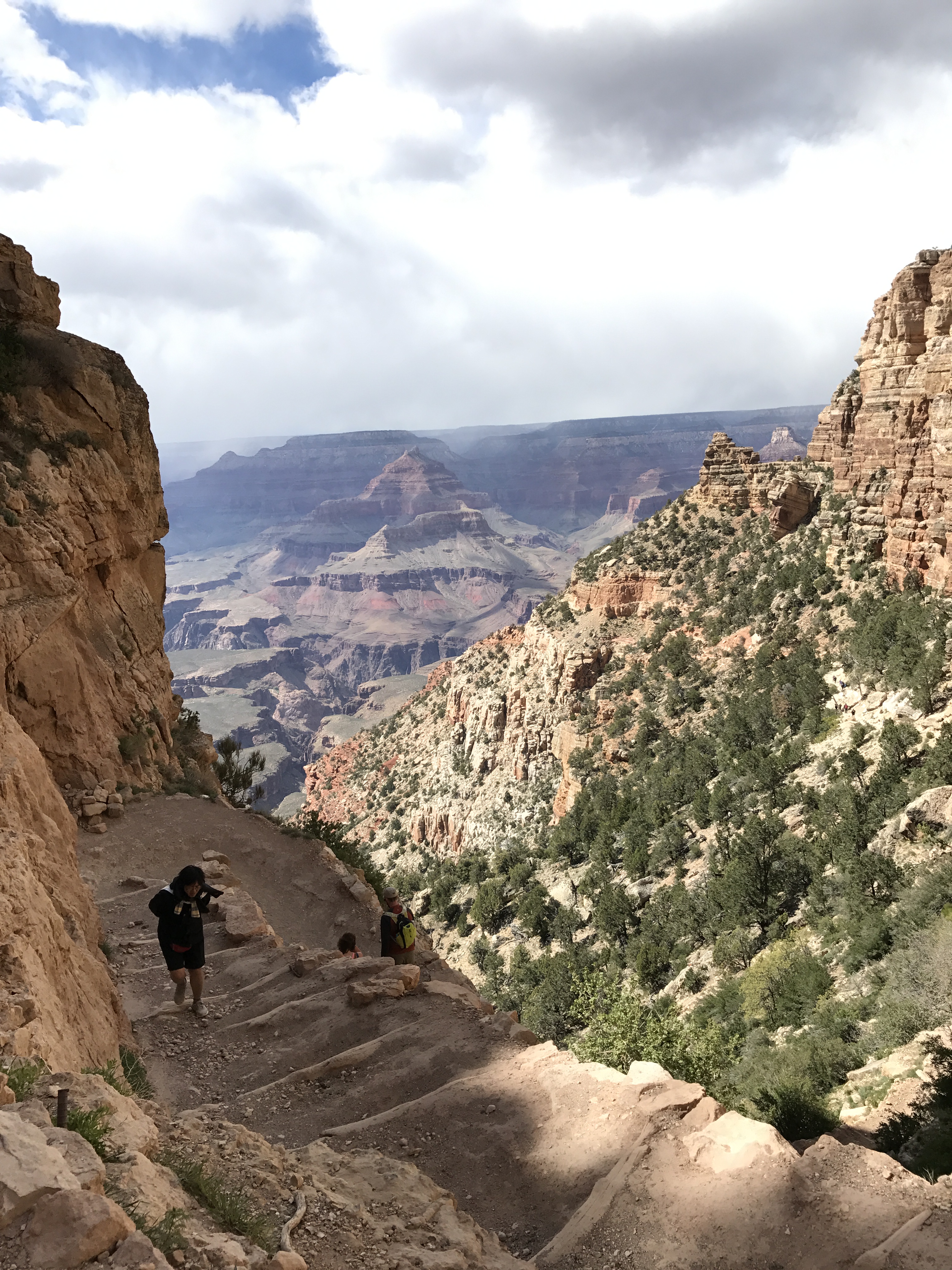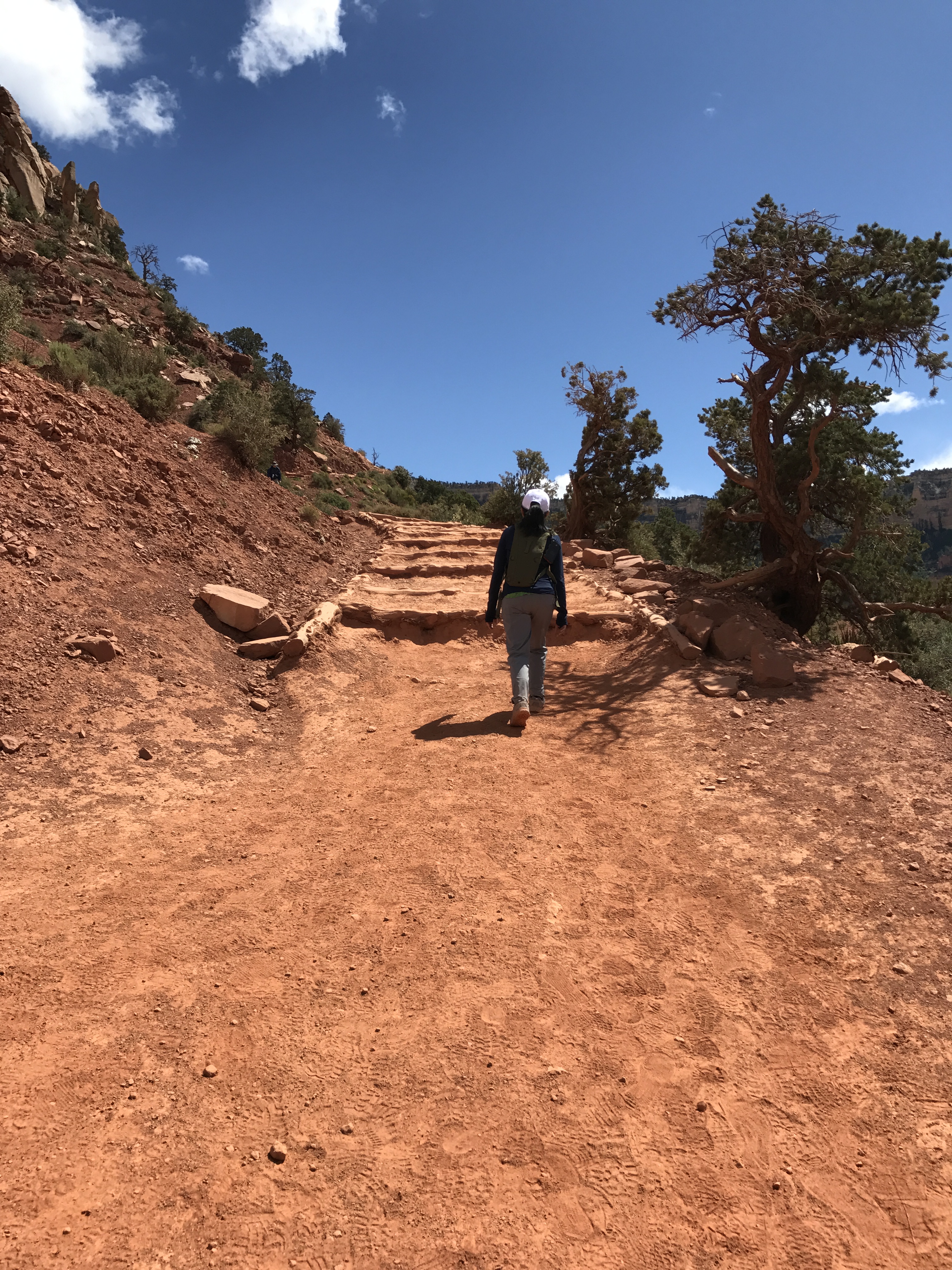 Day 4: None of us knew what we were in for. We heard several times from the shuttle bus driver that it may seem easy going down that you might not realize how hard it would be to come back up. So we took the shuttle and got off at the South Kaibab Trail starting point. We started bright and early so we’d have enough time to rest and enjoy the trail. The driver was right. I kept telling myself how I was having the best time of my life. But that didn’t last very long. The trail kept getting narrower and steeper and my legs were starting to kill me. Long story short, we decided to turn around when we reached the Tip Off, which is roughly 5 miles from the starting point. We hiked a total of 10 miles out and back for 8 hours with an elevation gain of 3,297 feet. Mind you, we DID NOT train for this. We should have.