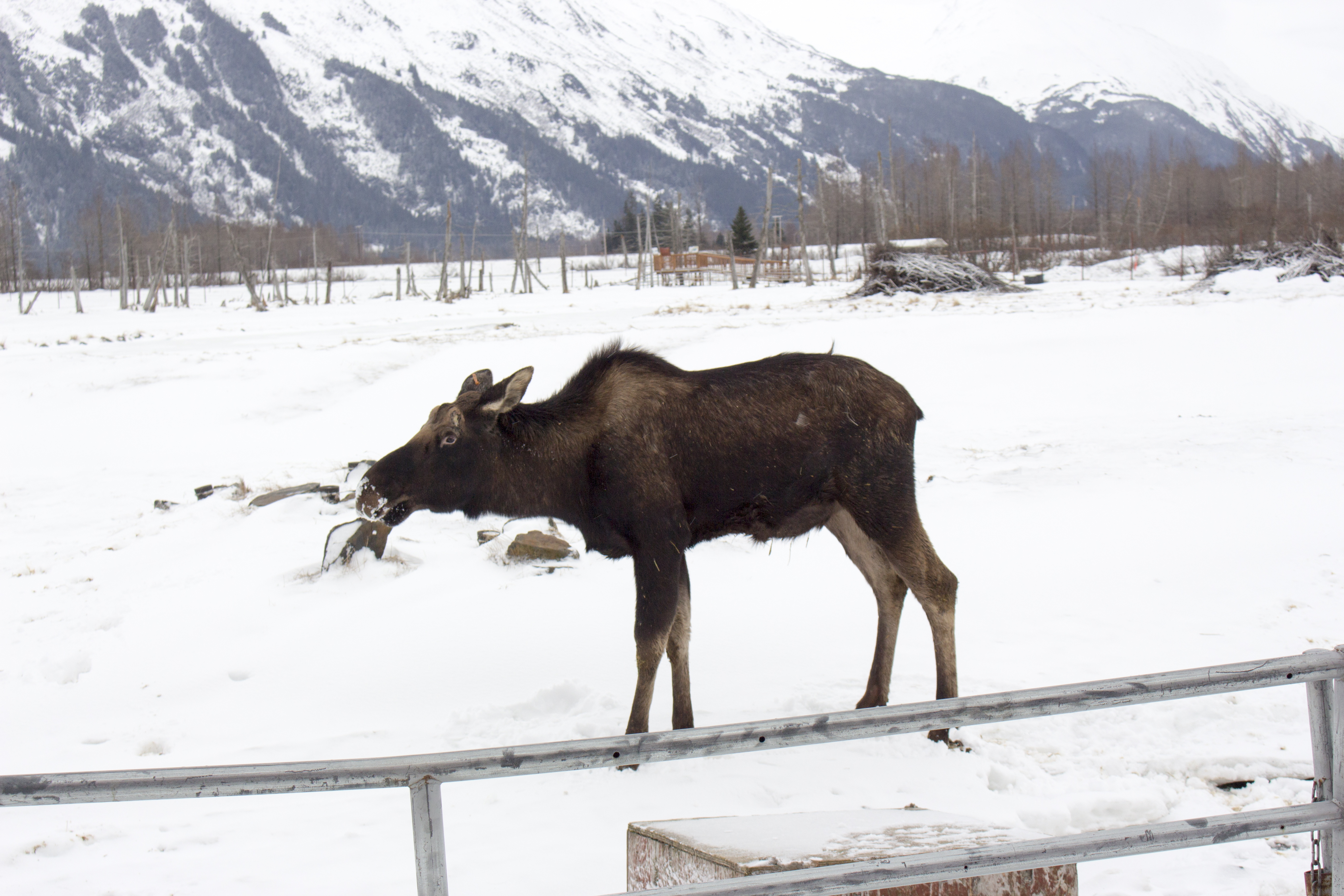 Day 2: We took a 1.5 hour trip to Turnagain arm and Portage Glacier. We were unable to walk across the frozen river to see the glacier because the path had already melted, no thanks to global warming. Next stop for the day was Alaska Wildlife Conservation Center in Portage. An admission fee of $16 for adults is collected at the entrance. You have an option to either walk around or drive around to see the wildlife. If you don’t do too well in cold weather (plus wind chill), driving around is the best way to go.