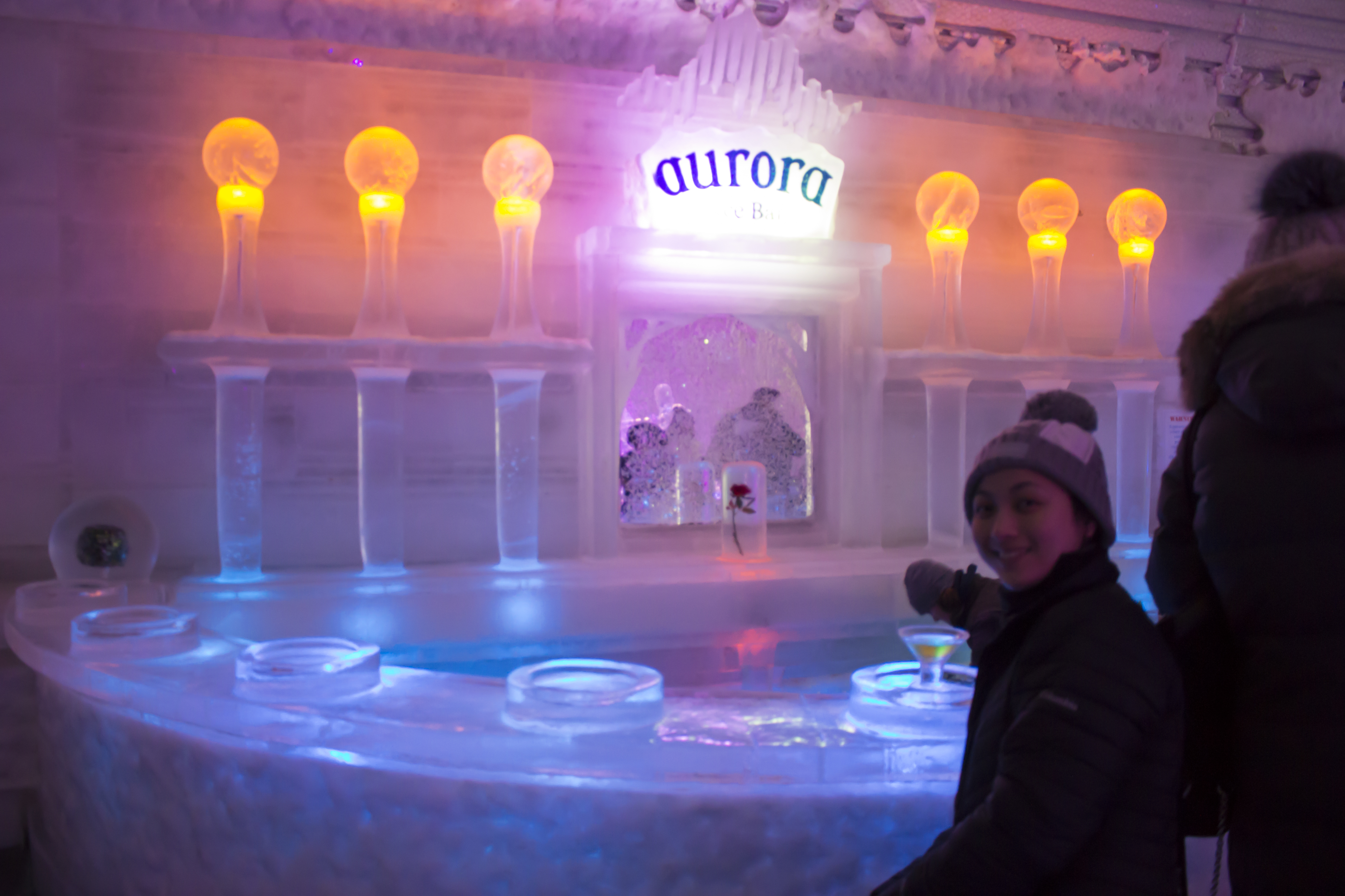 Day 5: I don’t regret not getting into the Chena Hot Springs. Getting in is no problem but I couldn’t imagine getting out of the water, walking a long way and freezing to death! Being the coward that I am, we just walked around and decided to go for the Aurora Ice Museum instead. As the name suggests, everything, absolutely everything is made out of carved ice. Before you enter, there’s an employee that will explain the do’s and dont’s while inside the museum. If you purchase an Appletini, it will be served in an ice glass. I should’ve listened to the lady when she was talking because when I finished my drink I was too excited to step out to break my ice glass. I thought we’d be able to break the ice glass outside and come back in. But she had already locked us out before I even knew it. We were only able to see about half of the ice sculptures.