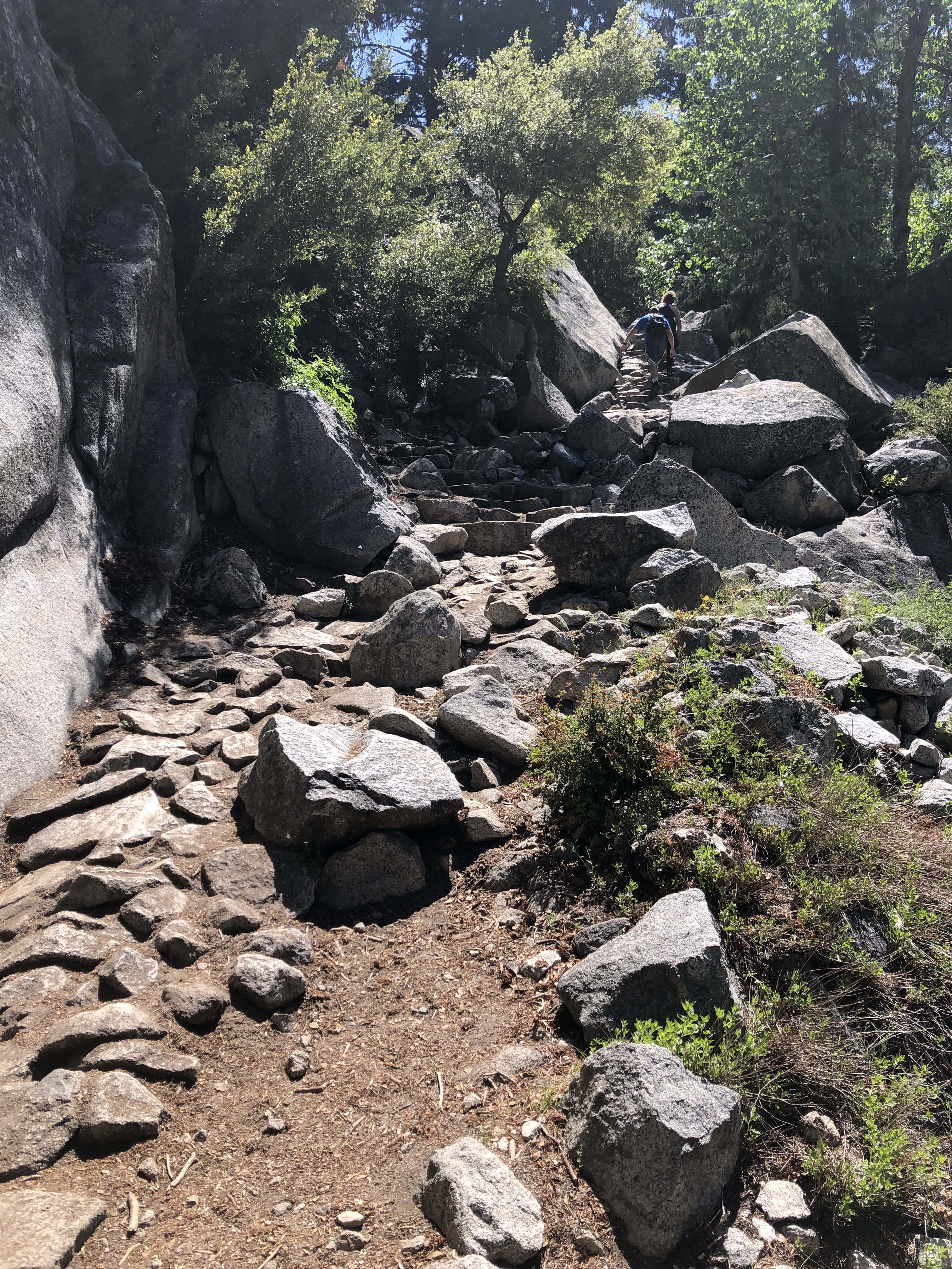 We arrived at Yosemite Visitor Center’s parking lot at about 7:30 in the morning. We parked there because we thought we could use the free shuttle but unfortunately they did not have the shuttles running due to COVID-19 concerns. Around 7:45 AM, we started walking to the trailhead, which was probably a few miles away from the parking lot. By the time we arrived at the trailhead it was already starting to get hot. The first half of the trail had plenty of shade but there were lots of bugs. I would recommend average hikers to bring 3-4 liters of water, trekking poles and to wear boots with ankle support. I constantly watched my steps but I still almost rolled my ankles a couple of times. The second half of the trail was exposed and had what seemed to be a never-ending switchbacks. It took us four hours to get to the viewpoint with plenty of breaks. We found ourselves a nice, shady area and stayed there to eat lunch. I can’t say that going down the trail was easier because my knees were sore after three hours of keeping myself from rolling down the steep, rocky trail. I think it helped that we still had to walk about 15 minutes to get to the car because I had a “cool down” period as opposed to me usually sitting down right after a strenuous hike. Surprisingly I was not sore at all the day after the hike.